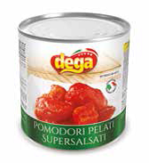 Pomodori tipo San Marzano, raccolti in Italia e subito lavorati, vengono conservati nel loro denso succo.