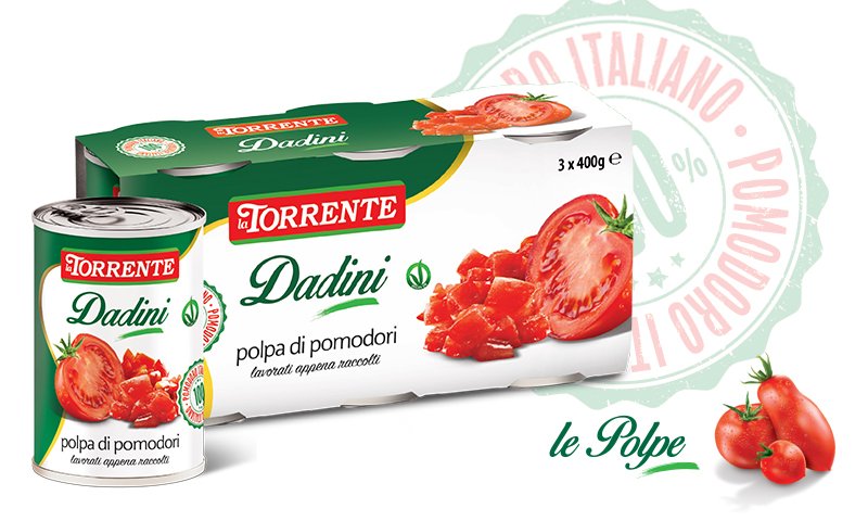 La praticità della polpa di pomodoro italiano, già tagliata e pronta per essere cucinata, semplifica la vita di chi lavora ai fornelli. Dolce e compatta, in ogni confezione c'è sola polpa natura di primissima qualità. Che sia saltata in padella, a usata come base per la pizza, la Polpa di Pomodoro a Cubetti La Torrente, aiuta chi ha le mani in pasta.